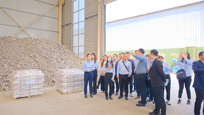 秦經(jīng)理在為大家講解隨后,大家來到不定形耐火材料生產(chǎn)基地,生產(chǎn)部秦亞濤帶領(lǐng)大家參觀了不定形耐火材料生產(chǎn)線,為大家耐心講解了全自動(dòng)化不定形耐火材料的生產(chǎn)過程,并對(duì)不定形耐火澆注料與可塑料的原料采購、碎石分級(jí)、配比、分裝等生產(chǎn)環(huán)節(jié)進(jìn)行一一介紹。忙碌有序的生產(chǎn)現(xiàn)場令新員工們對(duì)主要產(chǎn)品的原料、工藝、流程等方面也有了更直觀、更全面的認(rèn)識(shí)與了解。