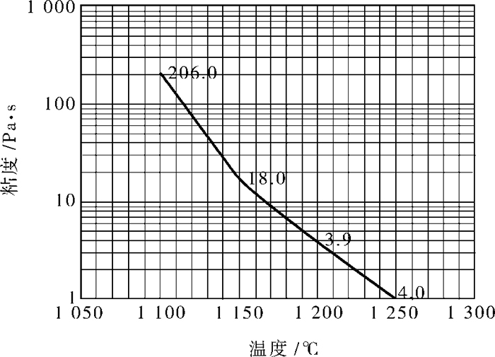 經(jīng)過試驗,向試驗煤樣中加入當(dāng)?shù)厣衬械纳匙舆M(jìn)行堿酸比例的調(diào)整。通過試驗可知,當(dāng)向試驗煤樣中加入相當(dāng)于煤灰分40%的沙子時,煤的粘溫特性得到了改善,灰熔點同時也得到了降低,粘溫特性如圖1。